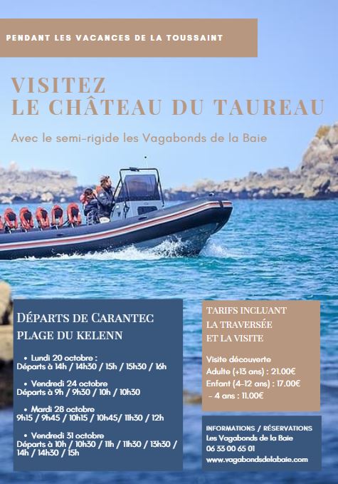 Les horaires indiqués ci-dessous, sont les horaires de départ de la vedette à passagers pour la visite/l’animation au château du Taureau.